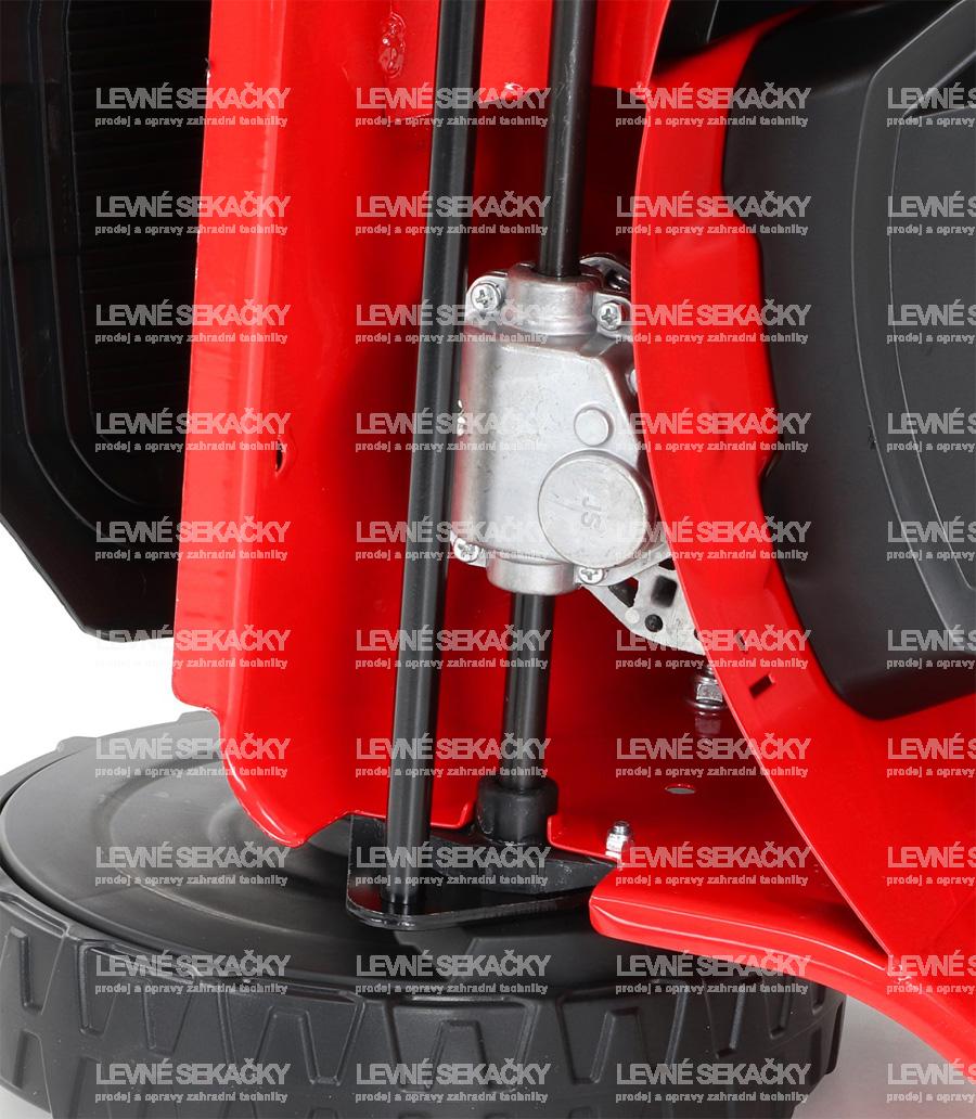 Velká zadní pojezdová kola i přední kola jsou uložena v oboustraných kuličkových ložiscích, centrální nastavení výšky sečení je u značky VeGA také samozřejmostí, jako ergonomické měkčené madlo.