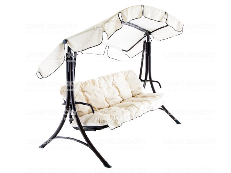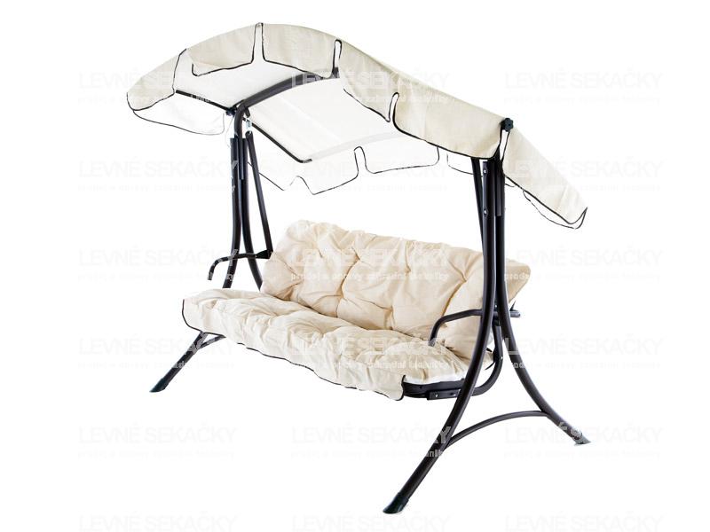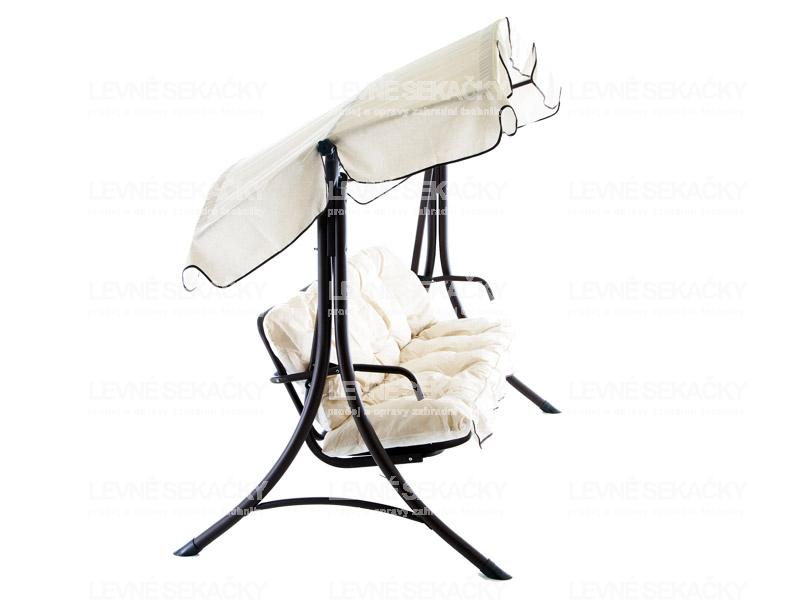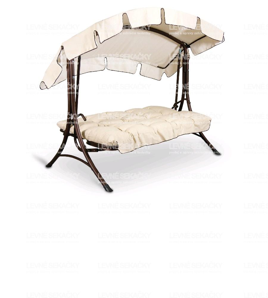 Kovová konstrukce podsedáku a opěradla je pro pohodlnost uživatelů vyplněna odpruženou drátěnou výztuhou . Masivní čalounění o síle 80 mm plně dokresluje charakter pohodlné luxusní houpačky pro ty nejnáročnější uživatelé. Jako speciální nadstandardní výbava je úprava houpačky do lůžkové úpravy , která se provede jednoduchou fixací podsedáku s opěradlem.