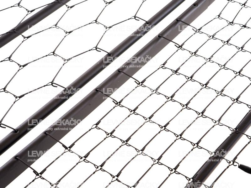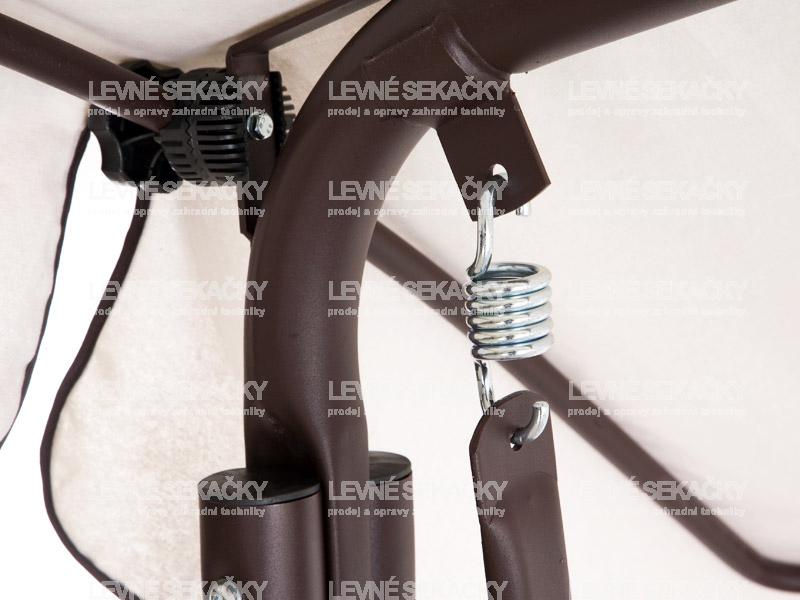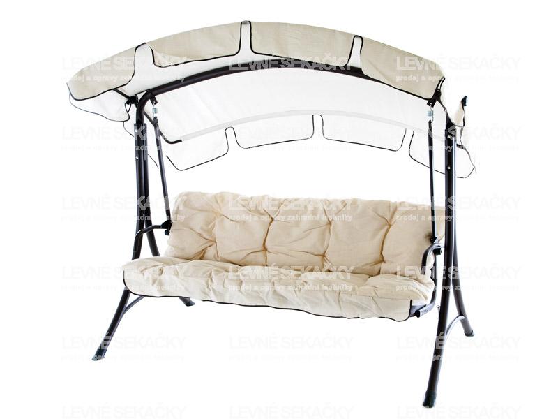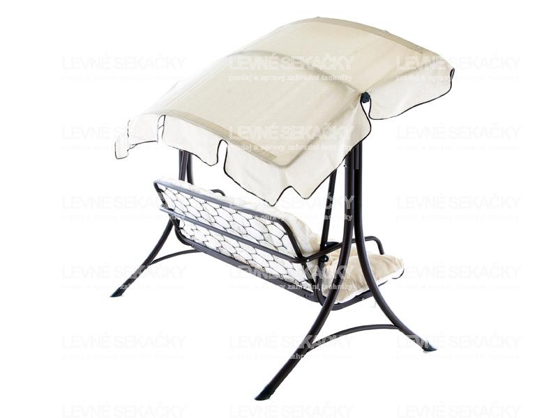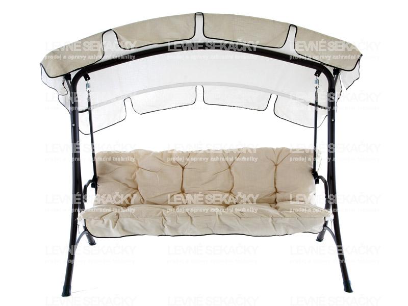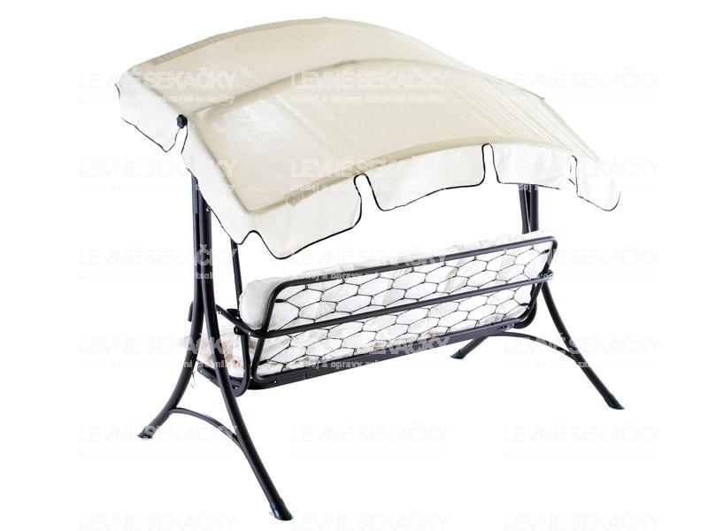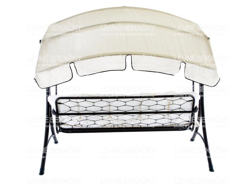 Zahradní třímístná houpací lavice s drátěným odpruženým sedákem.